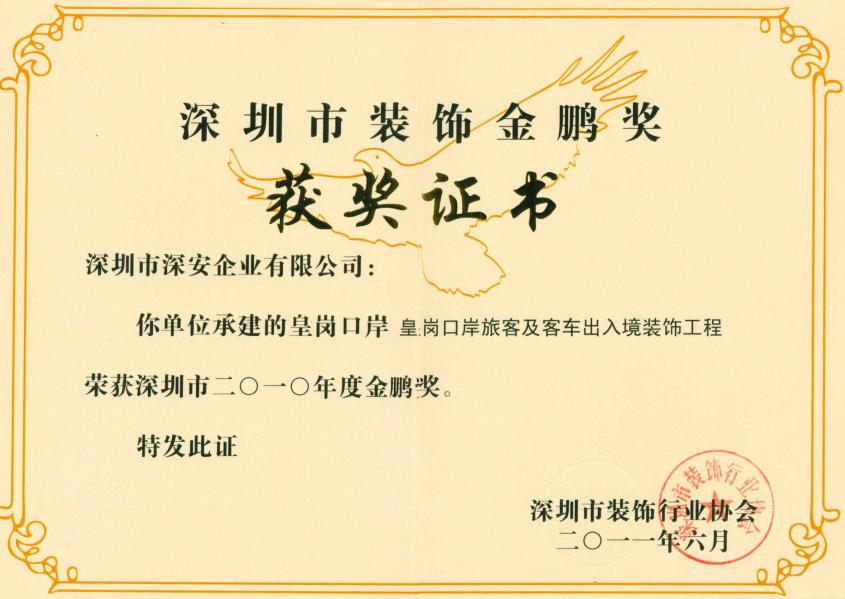 深安企業(yè)皇崗口岸車港城改造工程榮獲金鵬獎