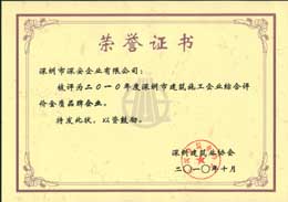 深安企業(yè)獲2010年度深圳建筑施工“金牌企業(yè)”榮譽(yù)