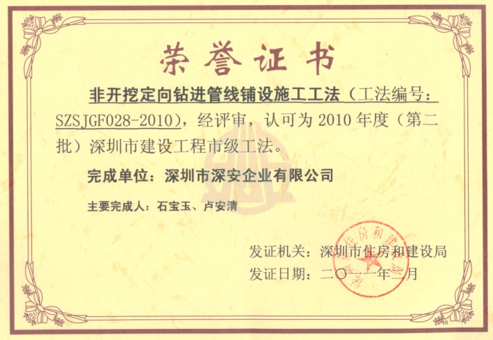 熱烈慶祝深安企業(yè)獲兩項(xiàng)市級(jí)工法