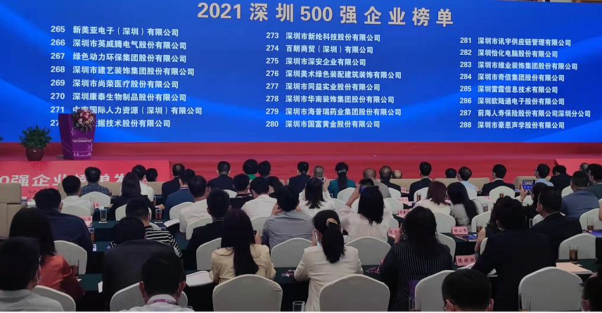 喜訊!深安企業(yè)再次入選“深圳500強(qiáng)企業(yè)”