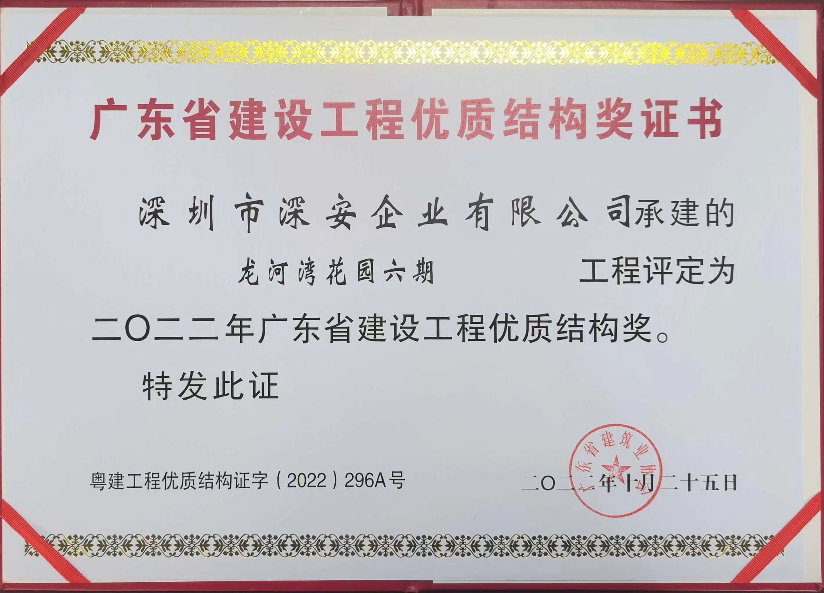 近日,廣東省建筑業(yè)協(xié)會(huì)2022年(第三批)廣東省建設(shè)工程優(yōu)質(zhì)結(jié)構(gòu)獎(jiǎng)(房屋建筑工程及專業(yè)工程)評(píng)審結(jié)果公示,深安企業(yè)承建的龍河灣花園六期工程,評(píng)定為2022年度廣東省建設(shè)工程優(yōu)質(zhì)結(jié)構(gòu)獎(jiǎng)。